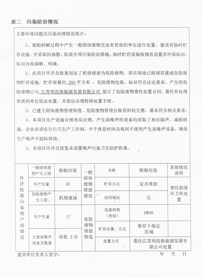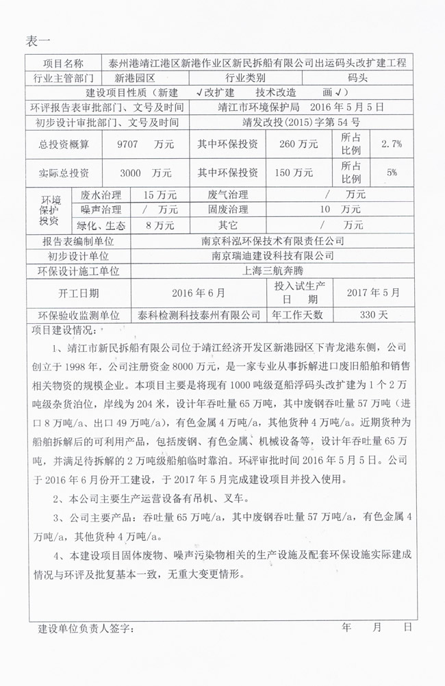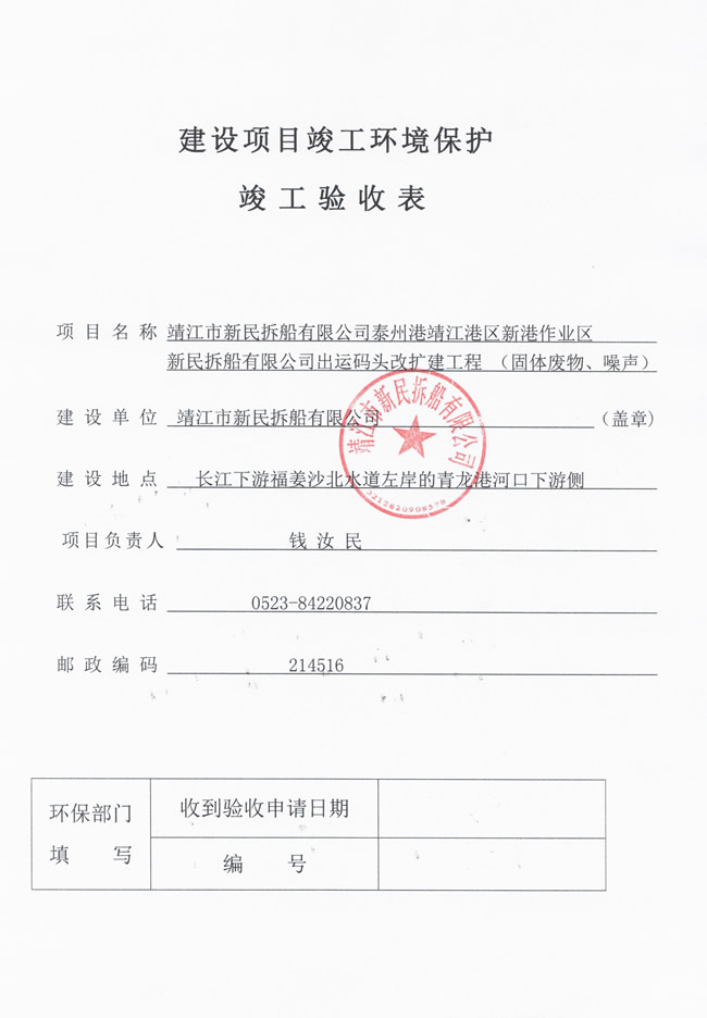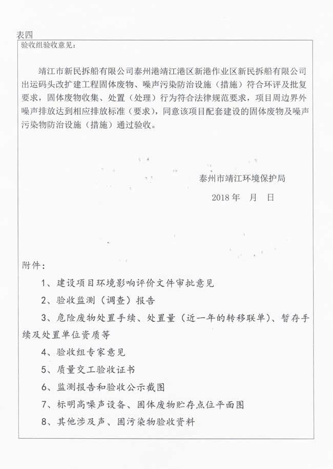新民拆船出运码头改扩建工程固体废物、噪声竣工验收表